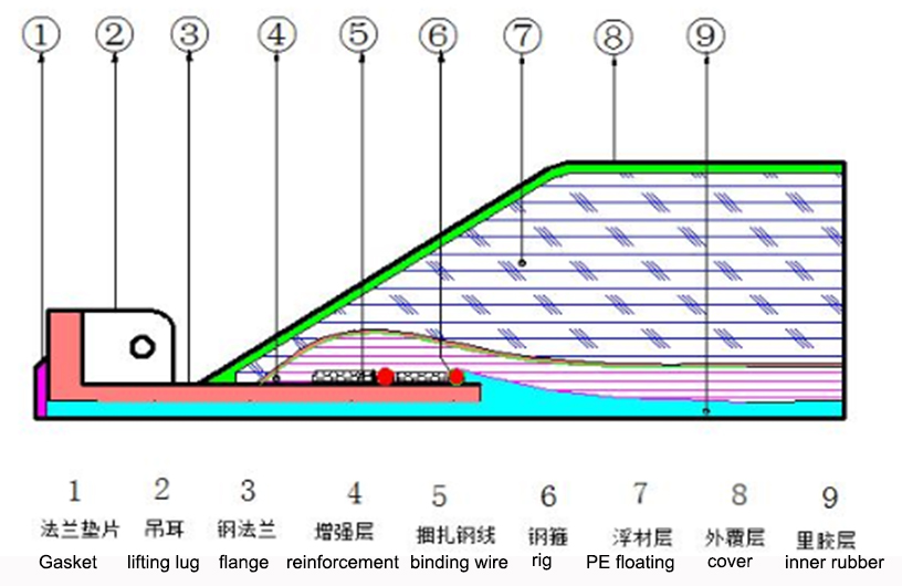 Floating hoses apply to pipelines suffer great impact of seawater surge and always being used on dredgers. The hoses with self-contained foam floats connect with each other to compose a floating pipeline. This kind of pipelines have stable floation condition, can bear powerful tension and torsion force that steel pipelines cannot sustain in extreme enviroments.